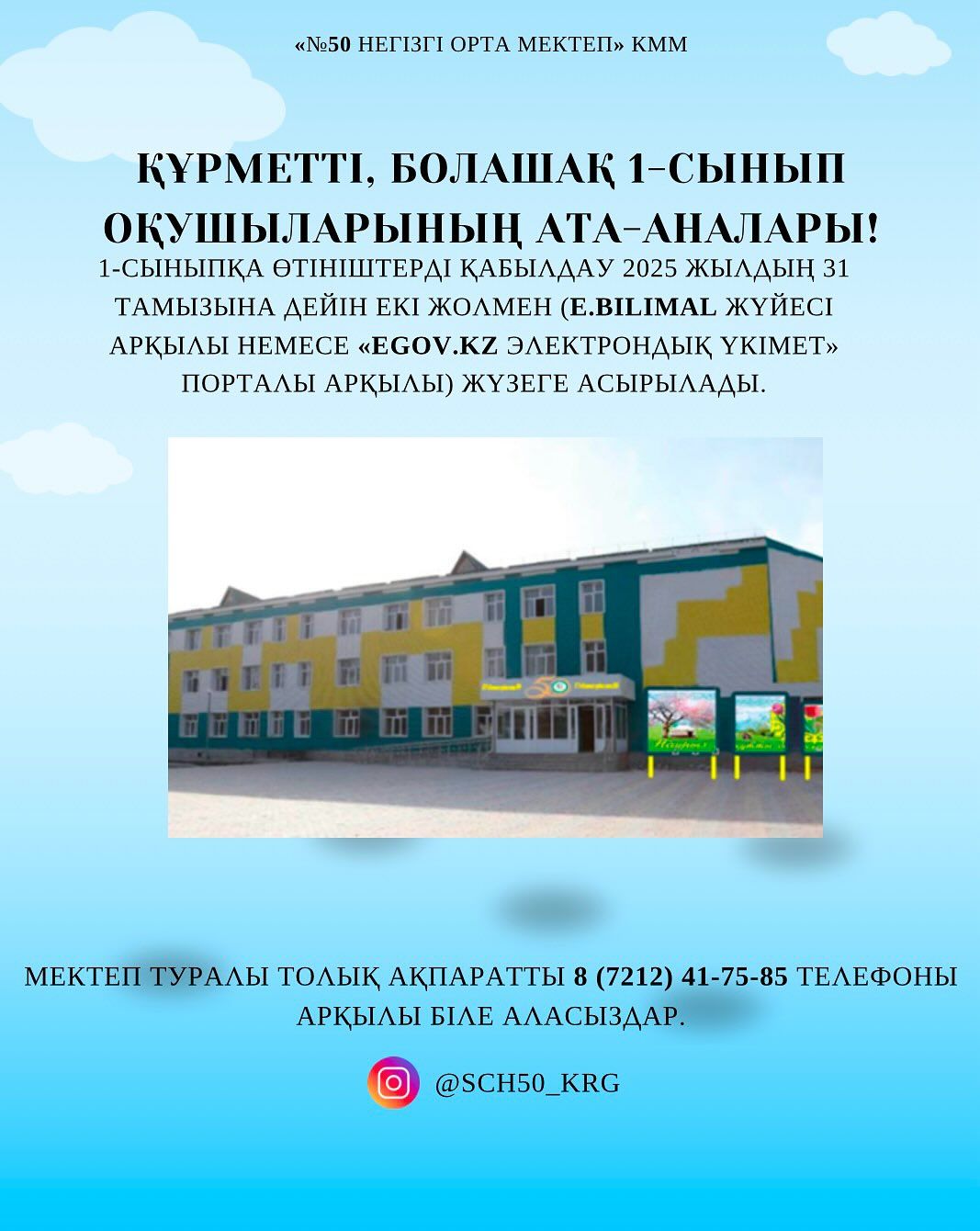 №50 негізгі орта мектебі" КММ келесі лауазымдарға конкурс жариялайды