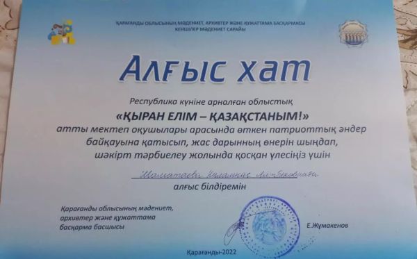 Қараша айының үші күні Қарағанды қаласының кеншілер сарайында өткен Республика күніне арналған "Қыран елім- Қазақстаным" атты мектеп оқушылары арасында өткен облыстық патриотт…