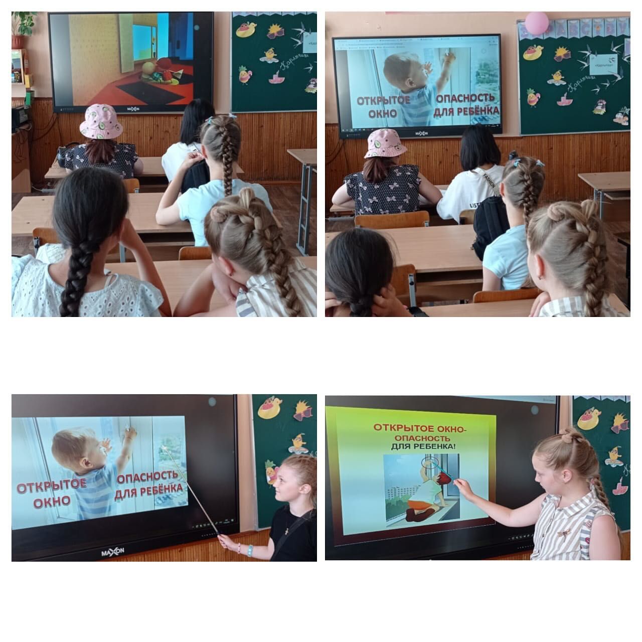Ребята,посещающие детскую пришкольную площадку «Қарлығаш» просмотрели обучающее видео на тему «Безопасные окна»