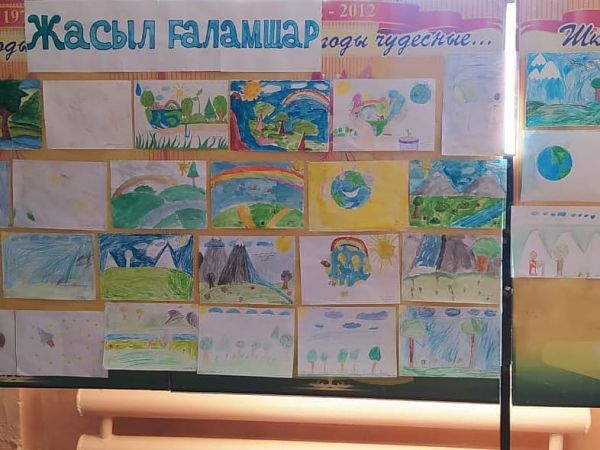 Жаратылыстану- ғылыми сауаттылық Апталығы аясында бастауыш сынып оқушылары "Жасыл ғаламшар" тақырыбында суреттер салды.