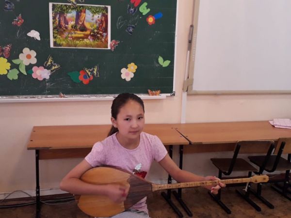 Мектепалаңындағы "Қарлығаш" лагерінің соңғы күні. Бұл күні домбырашылар күніне арналған "Қасиетті домбыра" сурет көрмесі және "Дәстүрлі өнерімді дәріптеймін" тақырыбынд…