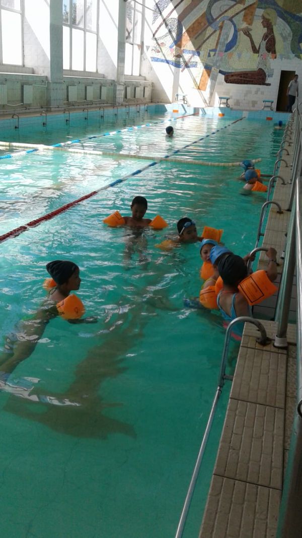 16.07.2018г. қарай балалар «Балалар мен жасөспірімдер» сарайының жанынан құрылған бассейнге барды. Суда жүзу көңілді спорттың бір түрі. Жүзу арқылы балалар шынығады. Балалар тамаша…