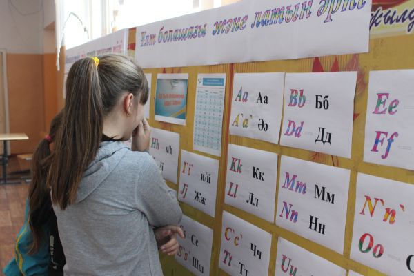 Ознакомительный стенд о переводе казахского алфавита на латиницу