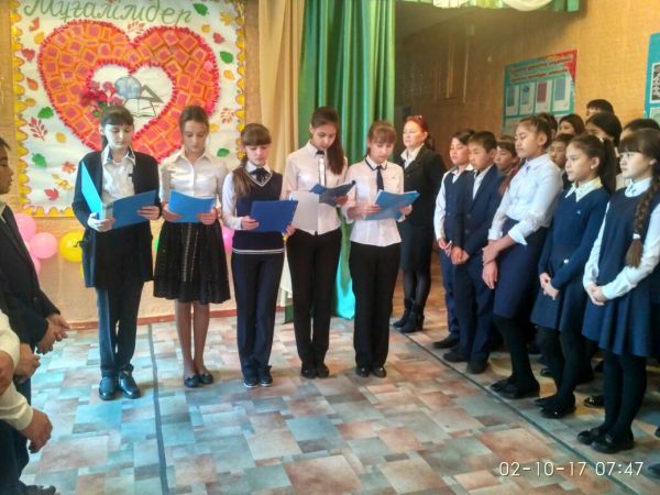 2 қазан күні мектепішілік жиында 8а сынып оқушылары мұғалімдерді төл мерекесімен тағы да құттықтап, ізгі тілектерін білдірді.