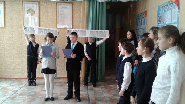 Выступление в начальной школе по пропаганде государственных символов Республики Казахстан
