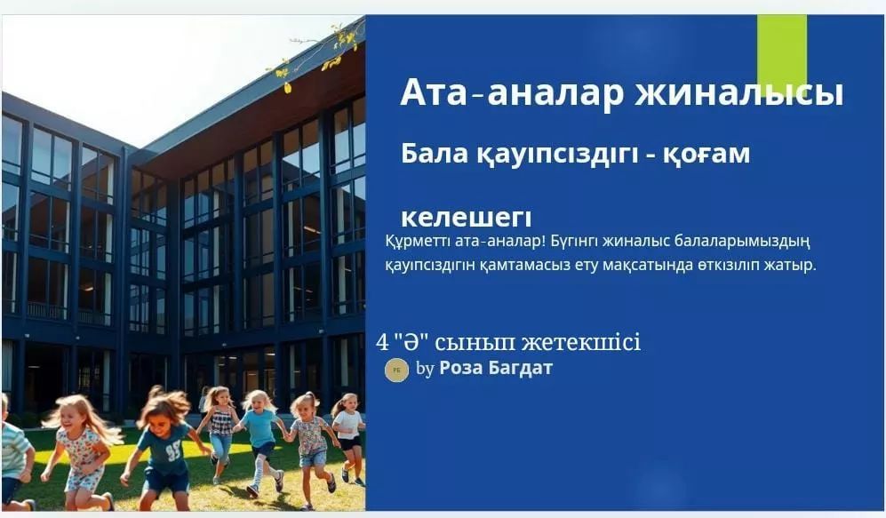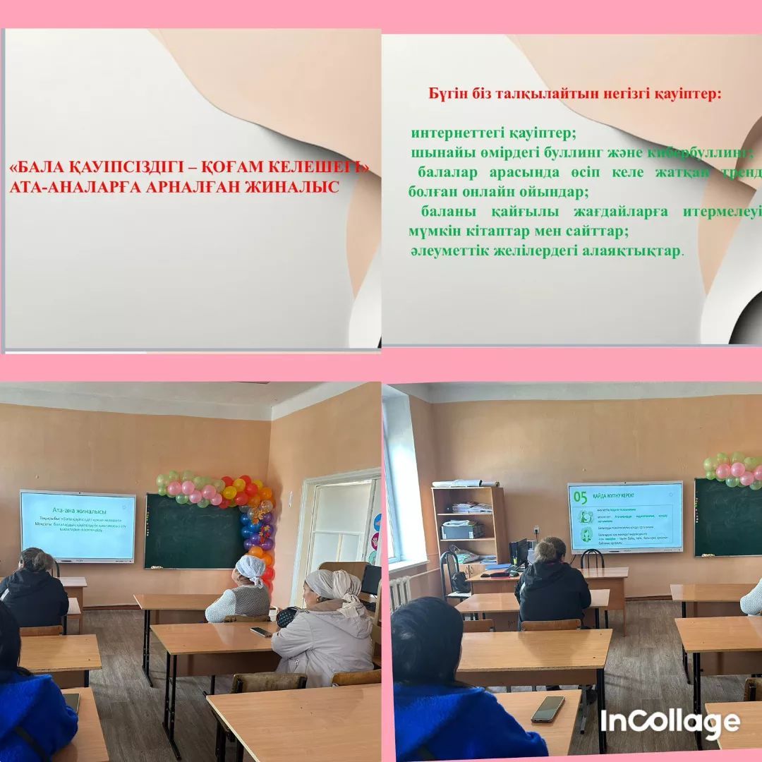 4"Ә"сыныбында оқушылардың ата-аналарымен "Бала қауіпсіздігі – қоғам келешегі" тақырыбында балалардың әлеуметтік желілердегі қауіпсіздігін қамтамасыз ету мақсатында жиналыс өтті.