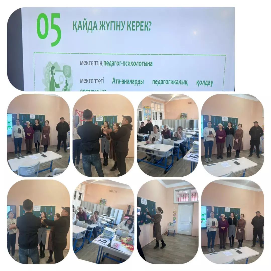 9«Ә"сыныбында оқушылардың ата-аналарымен "Бала қауіпсіздігі – қоғам келешегі" тақырыбында балалардың әлеуметтік желілердегі қауіпсіздігін қамтамасыз ету мақсатында жиналыс өтті.