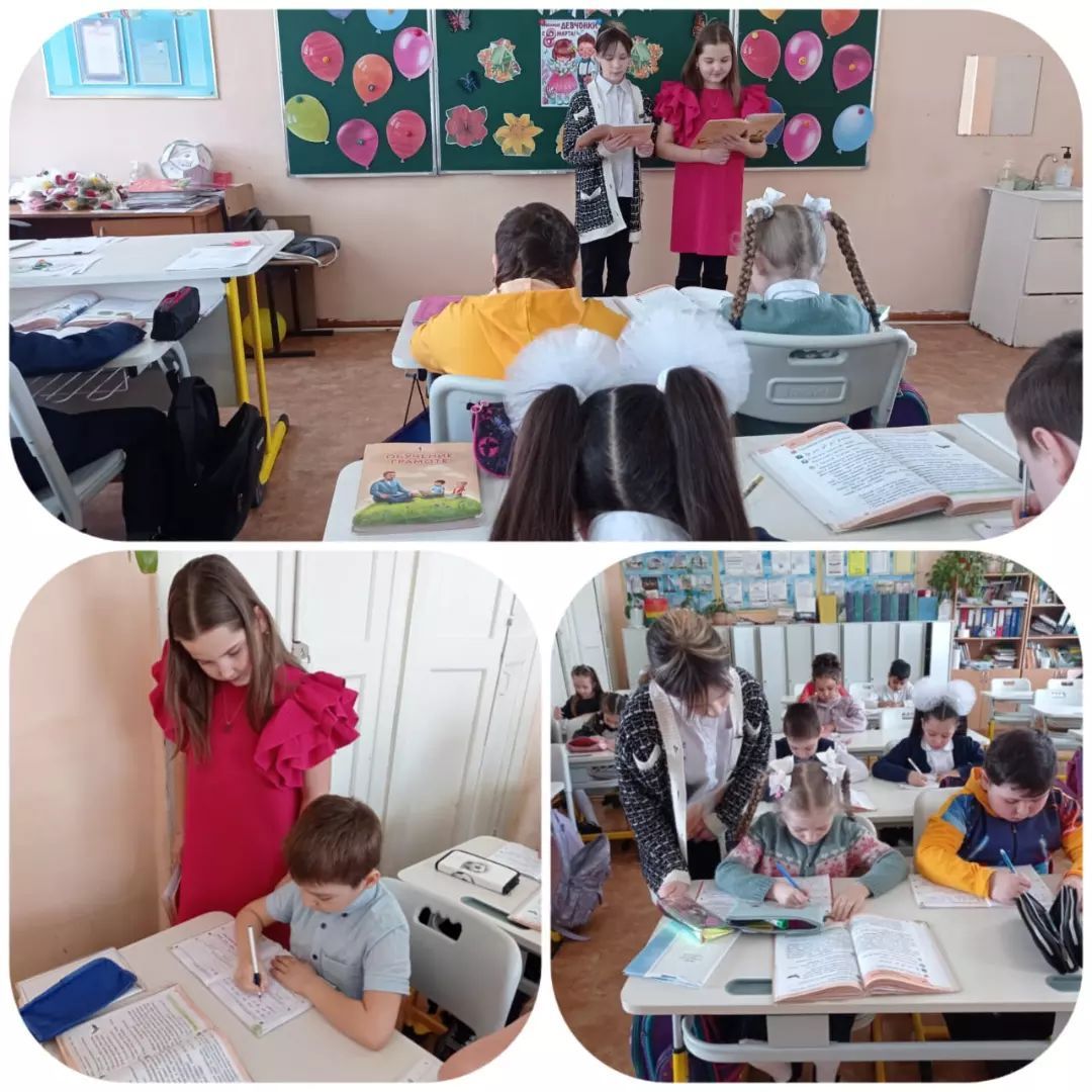 7 марта в нашей школе проходит в формате Дня дублёра: учащиеся сами проводят уроки. Ученицы 5б класса провели урок обучения грамоте в 1"Б" классе.