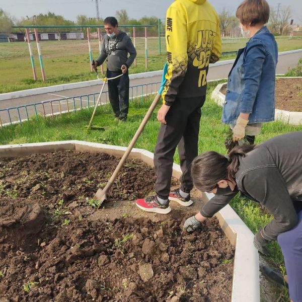 Біздің мектепте мектеп аумағын абаттандыру жұмыстары басталды: биология пәнінің мұғалімі Полюшкина Татьяна Александровнаның жетекшілігімен 9а және 9б сынып белсенділері гүлзарларға гүл к…