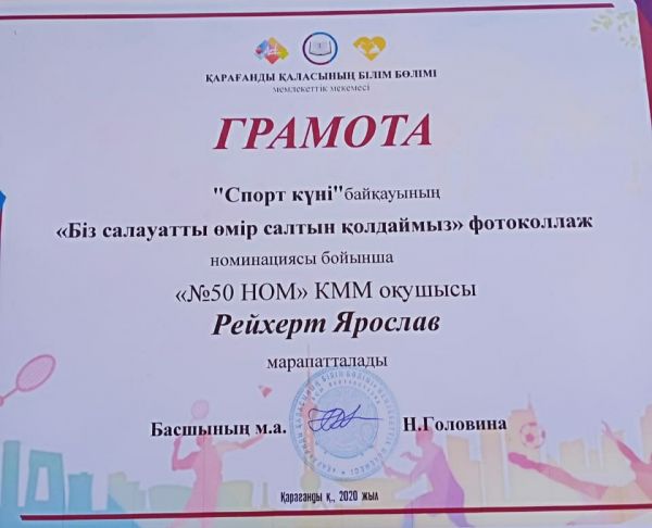1б сынып оқушылары Рейхерт Ярослав пен Закиров Райхан қалалық "Спорт күні" байқауының жеңімпазы атанды. Құттықтаймыз! Олар логопунктте оқытушы-логопед Ажевская Гали…