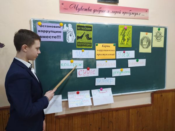 20 января для учащихся 2-9 классов были проведены классные часы о коррупции, о причинах ее появления в обществе, о путях решения этой проблемы.