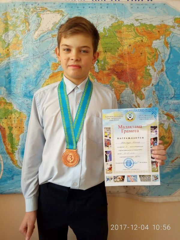 Учащиеся и ученики  нашей школы поздравляют ученика 7б класса Конжура Дениса с занятым 3 местом в Первенстве города Караганды по NOMADMMA среди юношей 12-13 лет в весовой категории…