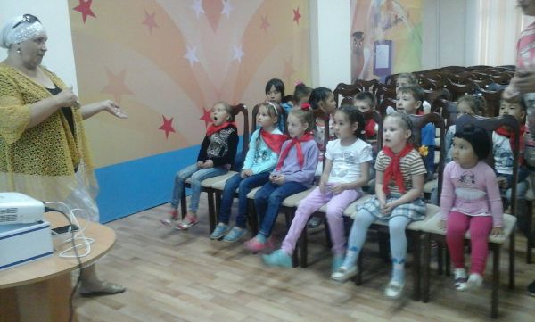 «Театрда, мәдени орындарда өзіңді қалай ұстауың керек?» тақырыбында әңгіме жүргізілді. «До, ре, ми, фа, соль, ля, си» ән және би сайысына балалар белсенді қатысты.