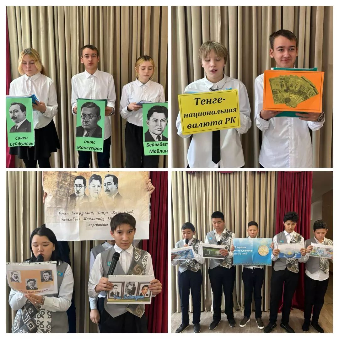 На линейке, которая была проведена 11 ноября, выступили ученики 9ә и 9б классов, которые сделали доклады , посвященные Дню национальной валюты РК - тенге и трем казахским деятелям: Сакену Сейфуллину…