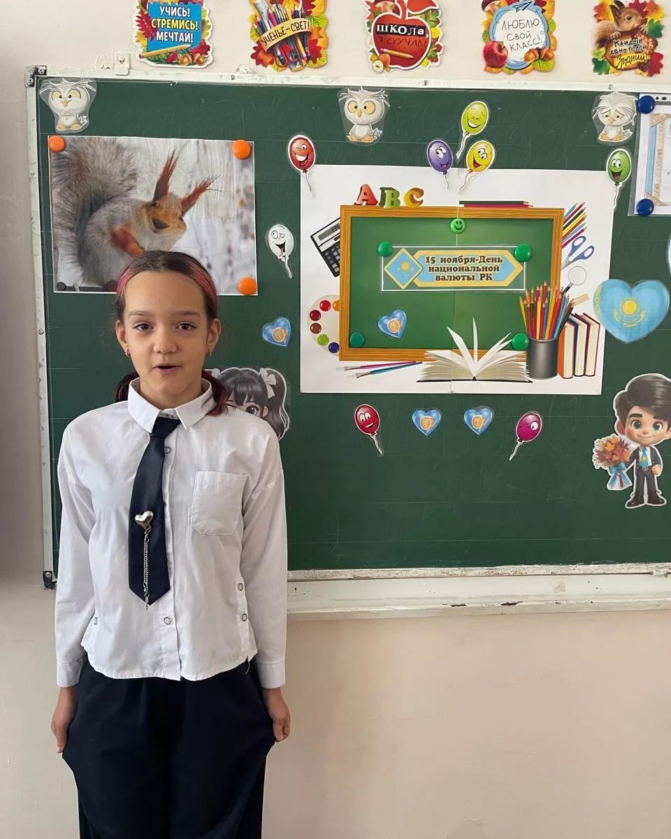 В 4Б классе прошёл классный час «Тенге- символ жизни и надежды». Ребята рассказывали стихи о Родине, узнали много интересного о национальной валюте, участвовали в викторине. По теме «Личной безопасности» обсуждали правила поведения при неблагоприятных при