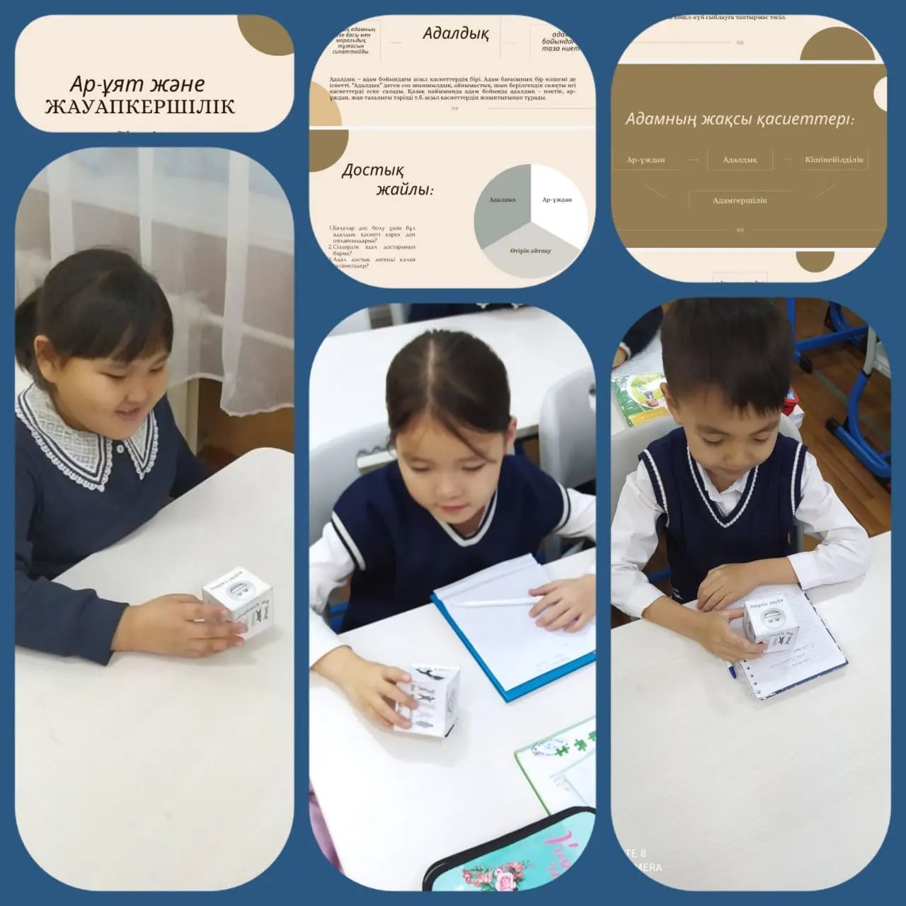 3 «Ә» сыныбында «Ар - ұят және жауапкершілік» тақырыбында сынып сағаты өтті. Мақсаты: оқушыларды өз іс-әрекеттері үшін жауапкершілікті білетін адам құрметке лайық екенін түс…