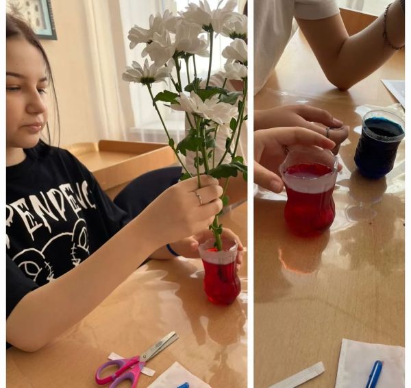 11.04.2023 учащиеся 8А класса в рамках недели "Наука и технология" провели опыт по изучению особенностей строения флоры. Исследовали скорость окрашивания цветков "Хризантемы ромашкови…