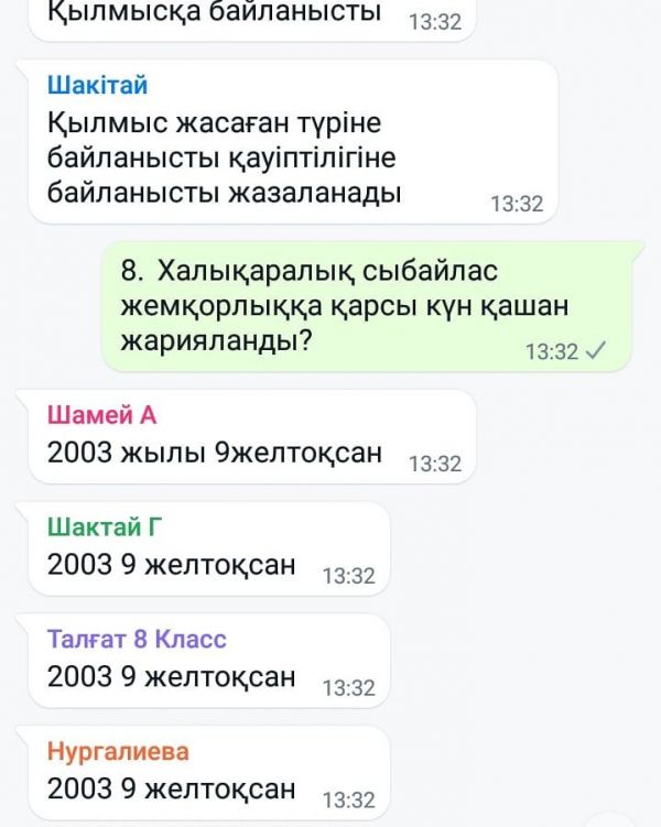 9 «Ә» сынып оқушыларымен «Жемқорлыққа жол жоқ» атты сынып сағаты өтті. Сынып сағатында балалар презентцациямен таныса отырып, түрлі сұрақтарға жауап берді.