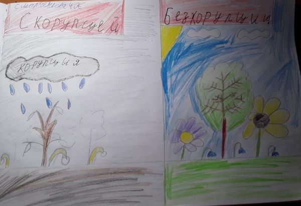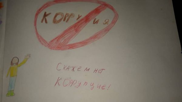 Ученицы 4а класса Гиёева Малика, Марченкова Александра и Шмидт Виктория подготовили рисунки на тему "Мы против коррупции".