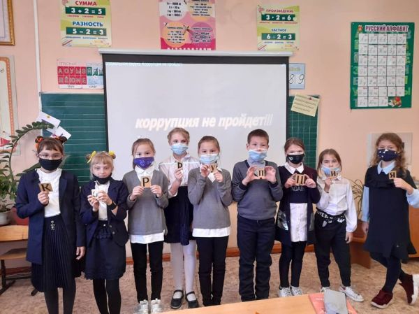 20.09.21 в 7б классе прошёл классный час "Мы за мир без коррупции", на котором дети рассуждали о том, что может сделать каждый человек, чтобы искоренить это опасное явление.