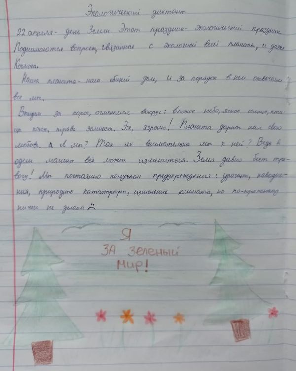 В рамках Недели экологической грамотности "Жасыл Қазақстан" сегодня, 19 апреля, во всех классах пройдут экологические диктанты