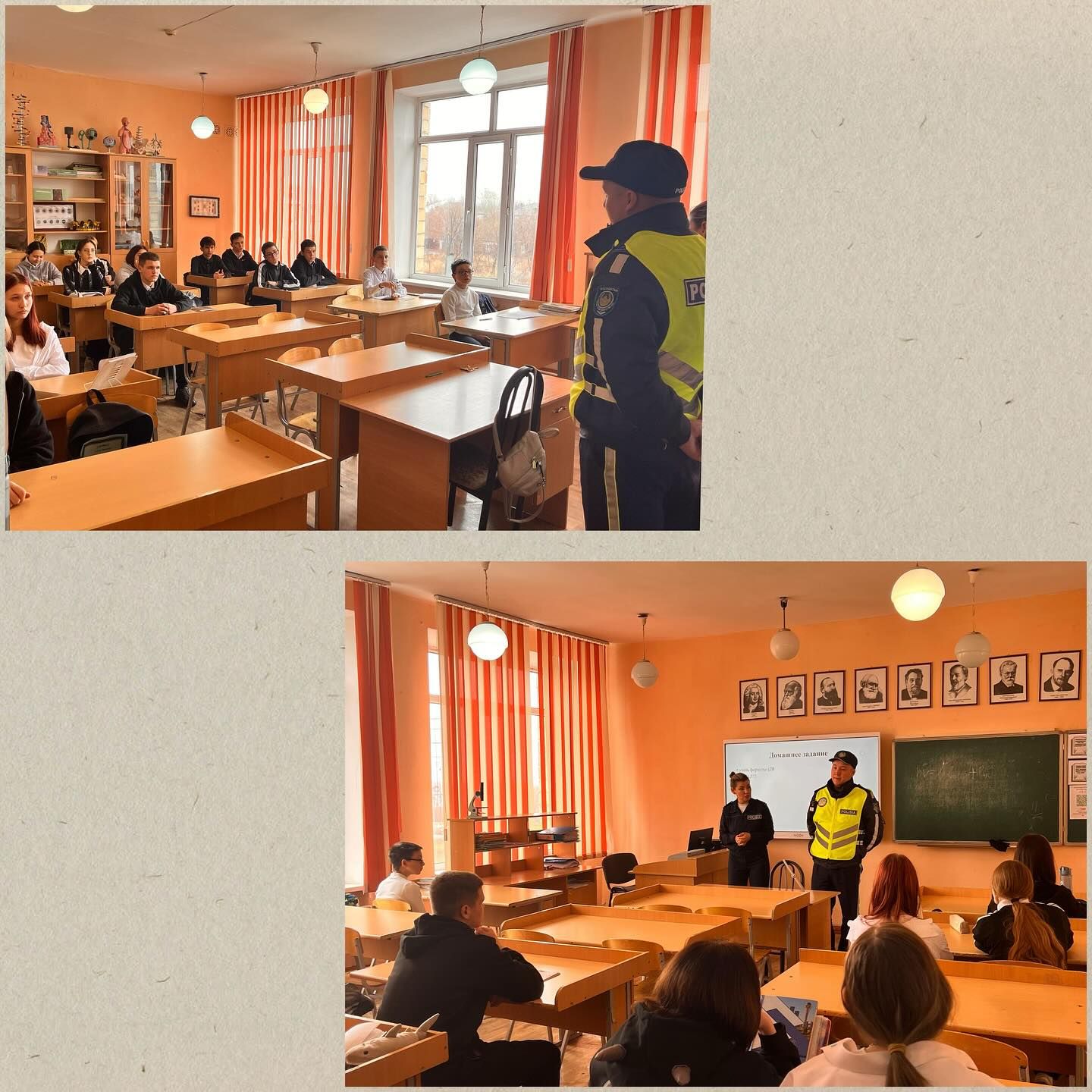 ОП капитан полиции Уркинбаева Ж.Д және мектеп инспекторы Абаев Т.Н оқушыларды жолда жүру ережелерімен таныстыру мақсатында дәріс жүргізді.