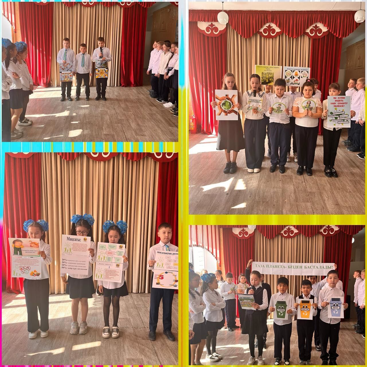 14-18 сәуір аралығында өтетін “Таза Қазақстан” экология апталығы аясында 4,сынып оқушылары апталықтың ашылу салтанатын саптық жиында өткізді. Оқушылар табиғатты қорғауға арналған ұрандар айтып, айналаны таза ұстауға шақырды. 5,8 сынып оқушылары “Өмірге