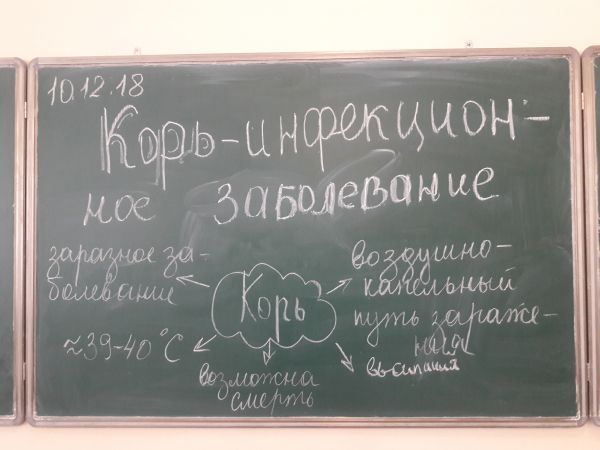 10 декабря классный руководитель 9а класса Бахтыбеков Еркин Мейрамбекович провел для своих учеников классный час о таком опасном вирусном заболевании, как корь. Ребята узнали о первых п…