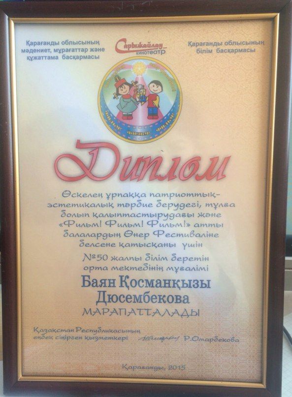 Ученица 6а класса Вечканова Виктория участвовала в фестивале «Фильм, фильм, фильм», который ежегодно проводится кинотеатром «Сарыжайлау». Наша ученица представила на выставку…