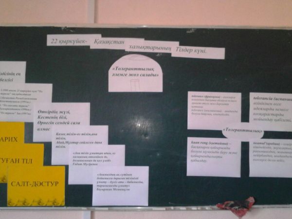 «Тілім тірегім, соғып тұрған жүрегім» 2015 жылдың 23 қыркүйек күні №50 НОМ Тілдер мерекесі күніне байланысты «Тілім тірегім, соғып тұрған жүрегім» тақырыбында сынып сағатта…