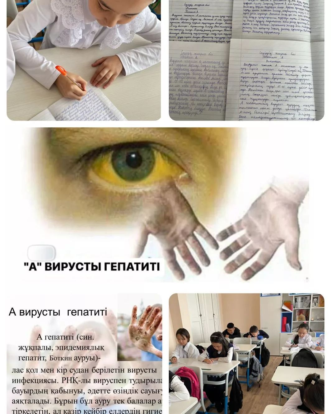 5-6 сыныптар вирустық "Гепатит А" инфекциясының алдын алу мақсатында диктант жазды.