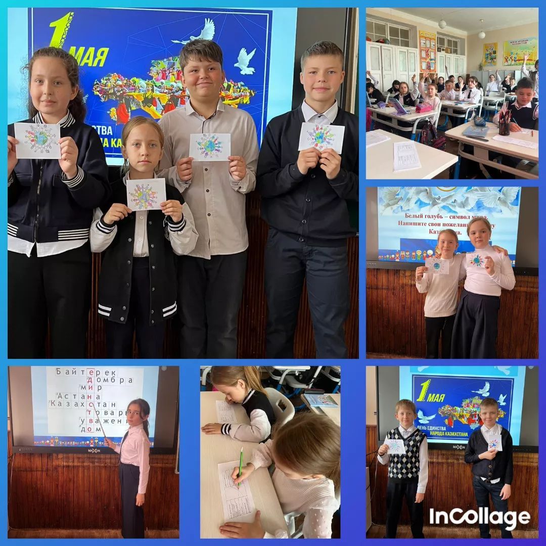 6 «Ә», 6 «А» сынып оқушылары Қазақстан халқы 1 мамыр – Халықтар бірлігі күні мерекесіне орай салтанатты жиын өткізді