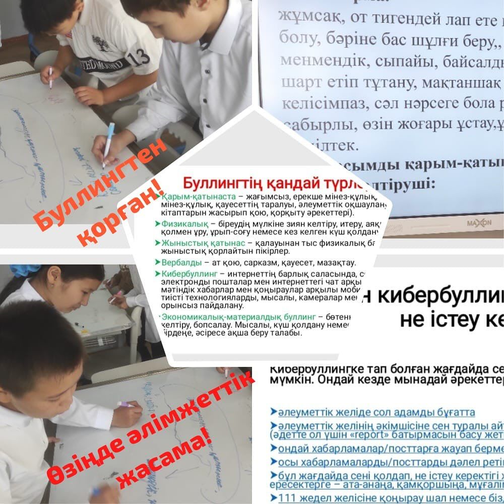 4 “Ә” сыныбында “ Оқушылар арасында буллинг пен кибербуллингтің алдын алу” тақырыбында сынып сағаты өтті.