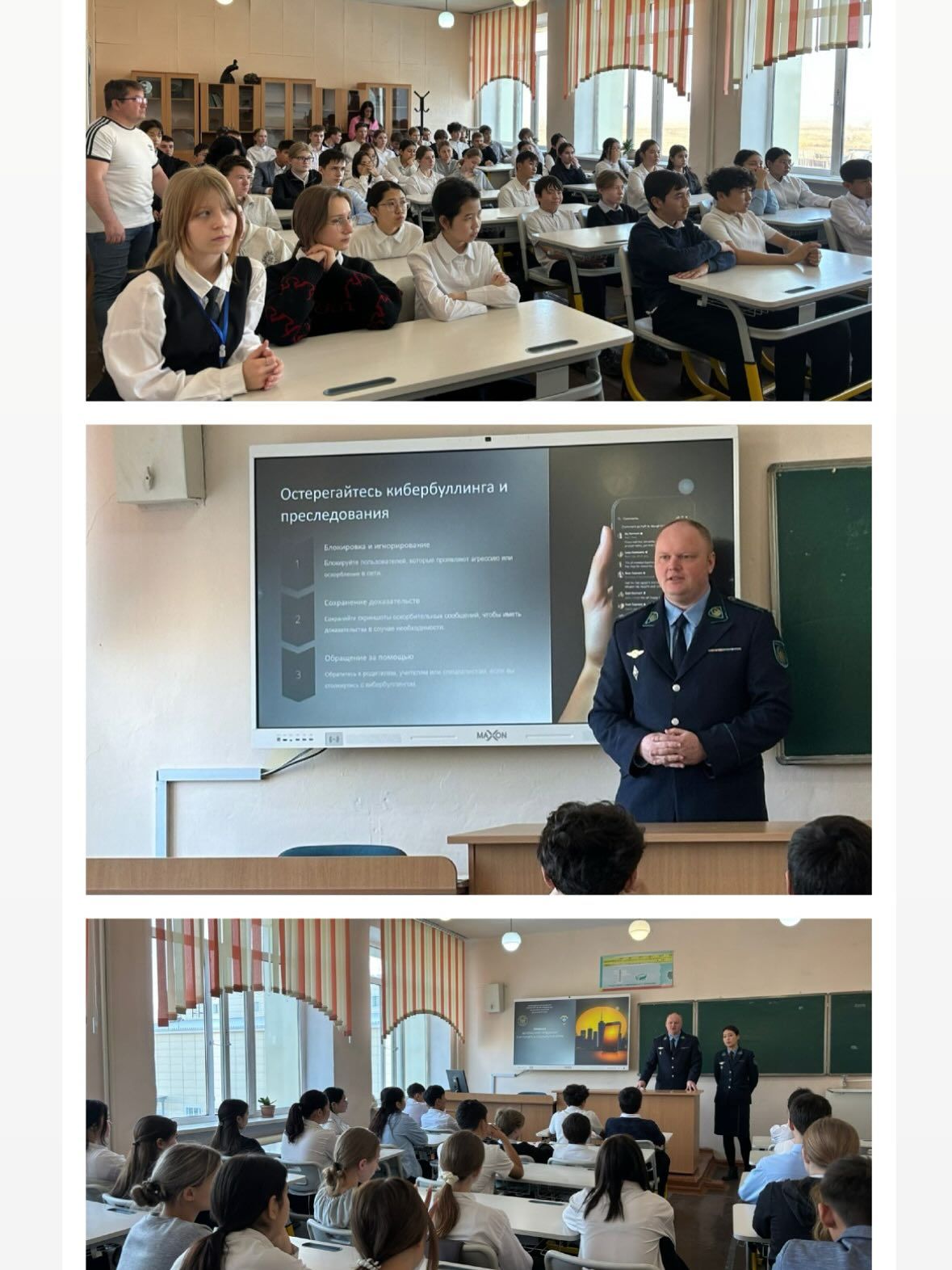 Бүгін, 19 қараша күні, мектебімізде Қазақстан Республикасы Ішкі істер министрлігінің Бәрімбек Бейсенов атындағы Қарағанды академиясының мамандары Урстенова Дарина Данияровна және Тафинцев Павел Анат…
