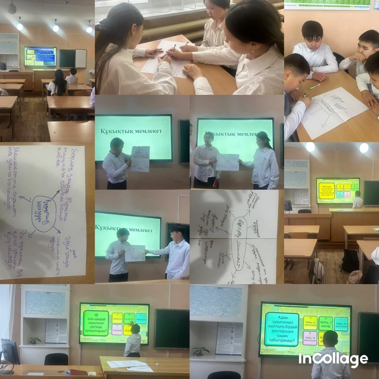 8 «Ә» сыныбында «Құқықтық мемлекет» тақырыбында сынып сағаты өтті. Мақсаты: оқушылардың құқықтары мен міндеттерін таныстыру, заңды құрметтеуге, өз құқықтарын қорғауға және жа…