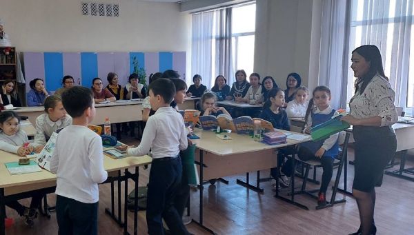 Мұғалім Репина О. А. оқу сауаттылығы апталығы аясында 6Б-сыныпта "автордың, кейіпкердің, шығарманың дәйексөзін біл"викторинасы өткізілді