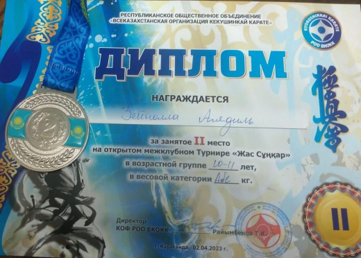 4"А" сынып оқушысы Зейнолла Аядиль каратэдан 2 орынды иеленді. Құттықтаймыз