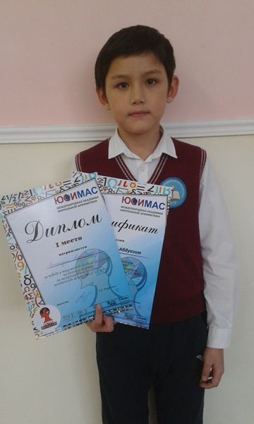 "USMAS" ментальды арифметикадан көрсеткен жоғарғы жетістігі үшін 3Ә сынып оқушысы Азаматұлы Абдуазим дипломмен марапатталды.