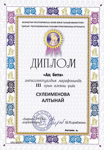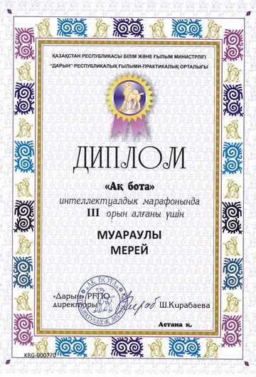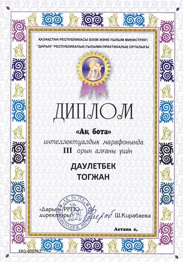 Қазақ тілі пәні бойынша мұғалімдерге арналған Республикалық қашықтық олимпиадасына қатысқан қазақ тілі пәні мұғалімдері Сейтхожина Т.Т ІІ орынмен, Кулсеитова А.Ж ІІІ орынмен марапатталды.