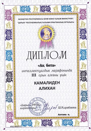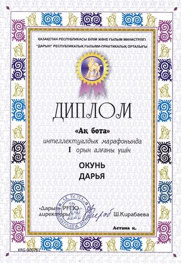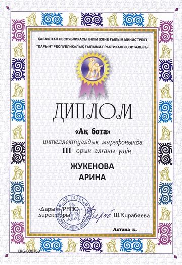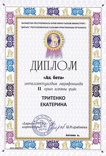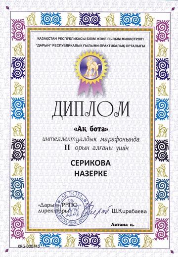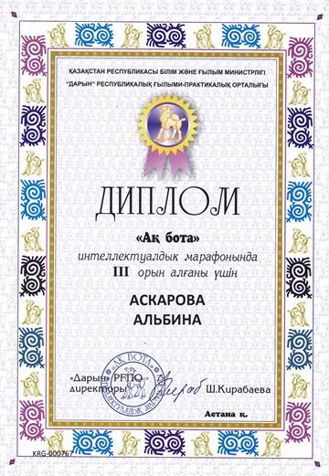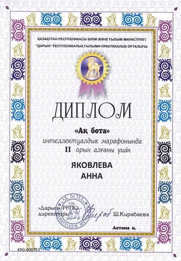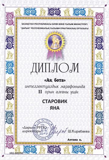 2 В сынып оқушысы Скоробогатова Алина "Salem Qazaqstan-2017" халықаралық байқауына қатысқаны үшін І деңгейлі дипломмен марапатталады.