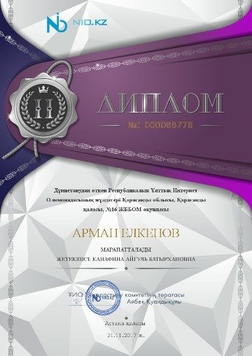3Ә сынып оқушылары Республикалық интернет Олимпиадасына қатысып, жүлделі орындарға ие болды. Сынып жетекшісі: А.Б.Канафина.