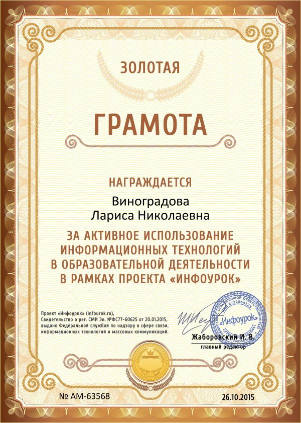 "Инфоурок" жобасы шеңберінде І, ІІ орын жеңімпаздарын дайындағаны, білім беру қызметінде ақпараттық технологияларды белсене пайдаланғаны үшін бастауыш сынып мұғалімдері Л.Н.Виноградова, В.…