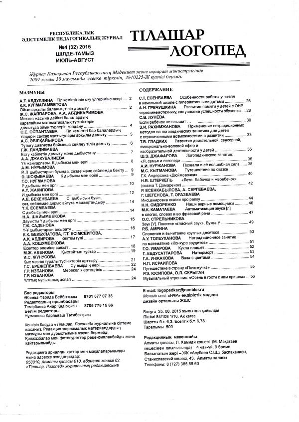 Республикалық педагогикалық-әдістемелік журналында мектебіміздің логопеді Н.А.Шайымбекованың мақаласы басылып шығарылды. Құттықтаймыз!