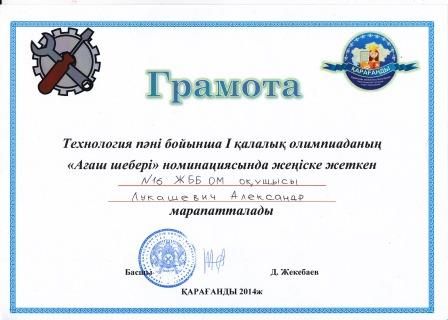 Лукашевич Александрды еңбек пәні бойынша қалалық олимпиададағы жеңісімен құттықтаймыз!