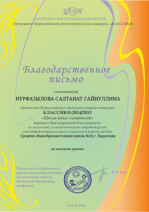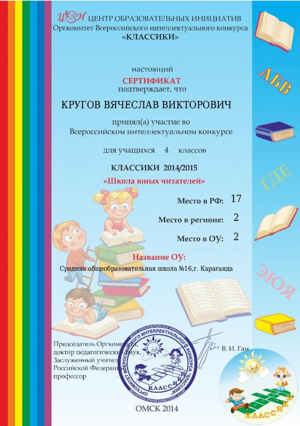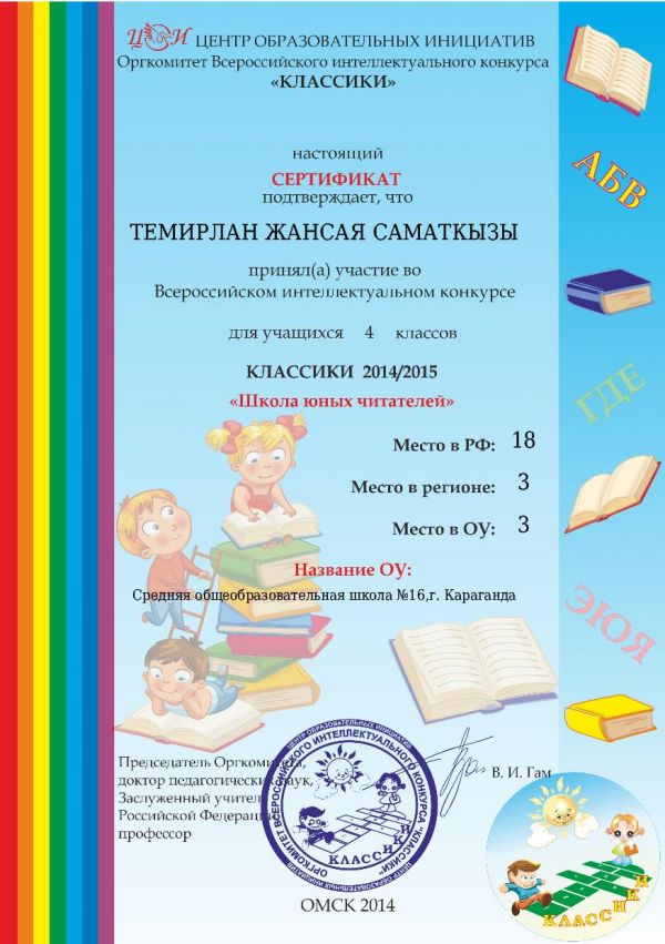Халықаралық "Классиктер 4 сынып" байқауының жеңімпаздарын құттықтаймыз