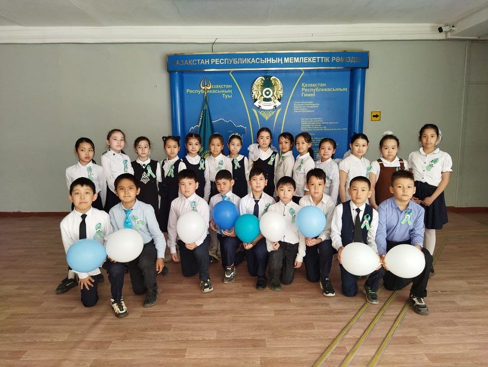 Қарағанды қаласы білім бөлімінің №16 ЖББМ КММ-нің 1А-сынып оқушылары «Жеңіс лентасын» кеуделеріне тағып, Мамыр мерекесіне арнап, өлең шумақтарын оқыды. Сынып жетекшісі: А.Т. Жандаулетова