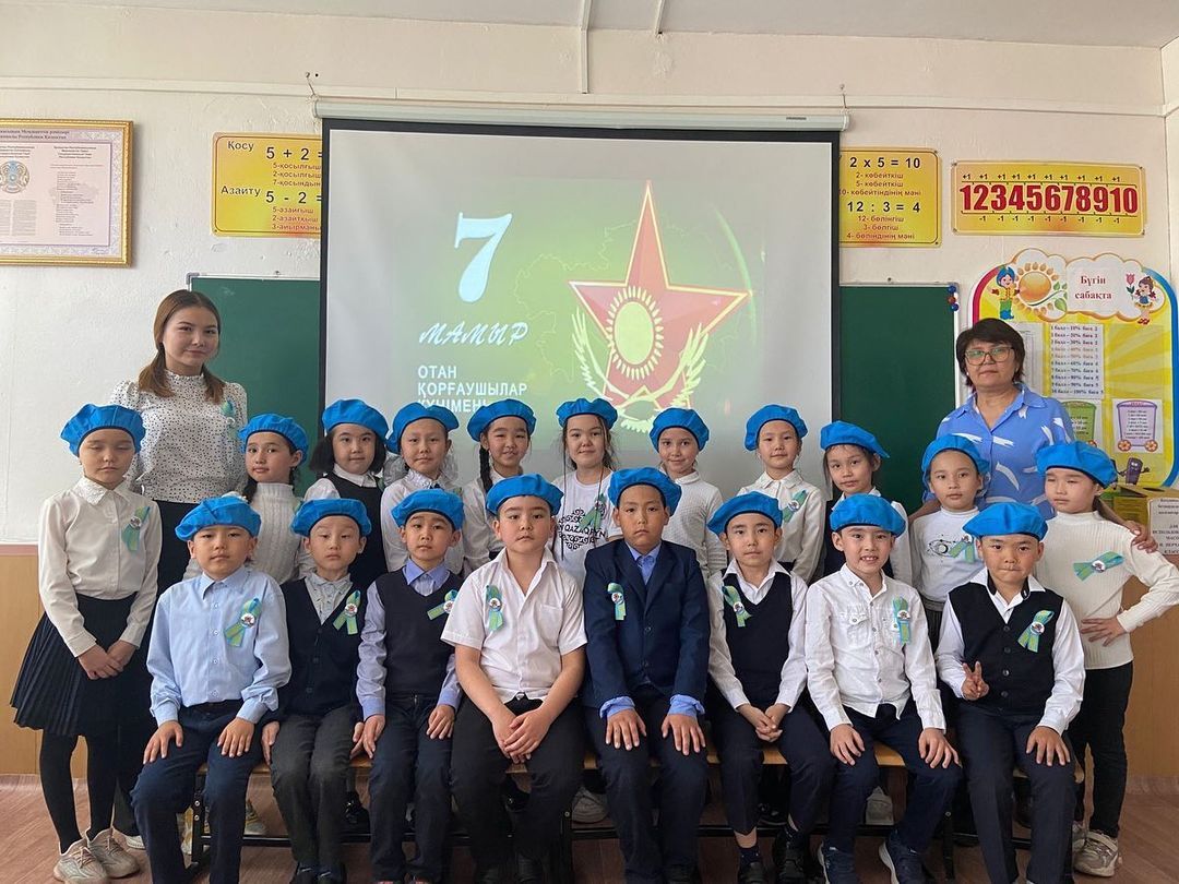 1"Д" сыныбында "7 Мамыр-Отан қорғаушылар күні" тақырыбында тәрбие сағаты өтті. Мақсаты: Оқушыларға Ұлы Отанды сүюге, ұлтжандылық қасиеттерін дәріптеу.