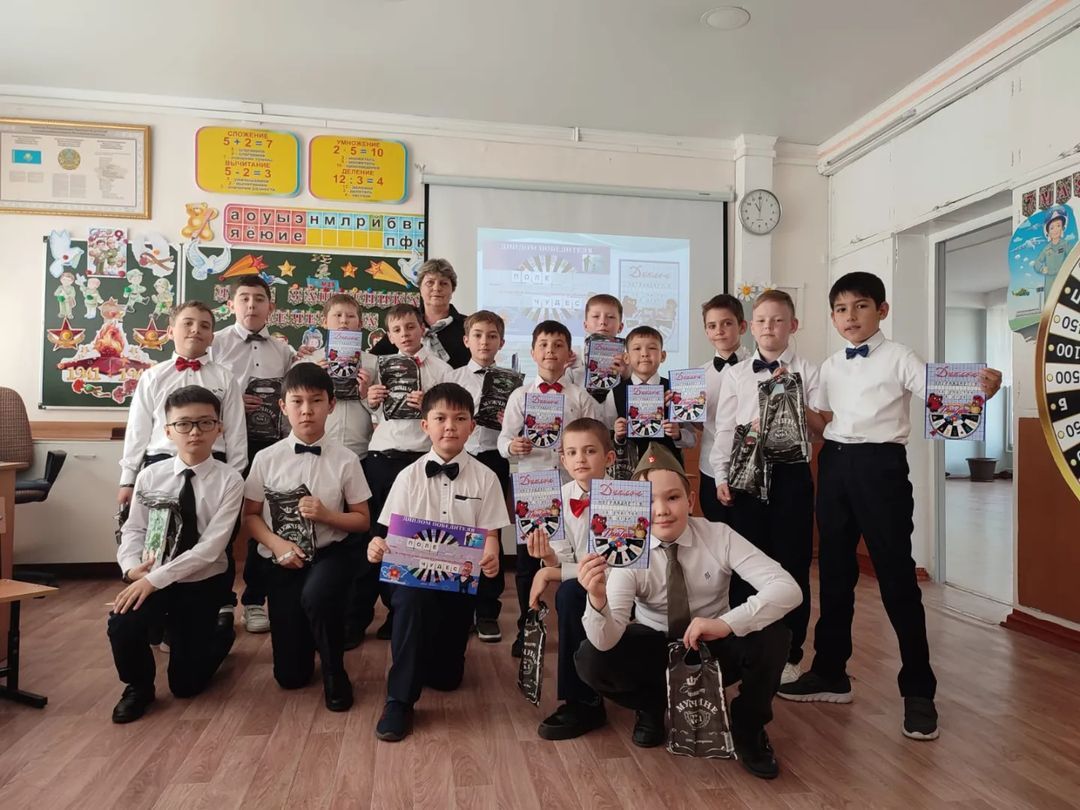 Қарағанды қаласы білім бөлімінің №16 ЖББМ КММ-нің 1А-сынып оқушылары «Жеңіс лентасын» кеуделеріне тағып, Мамыр мерекесіне арнап, өлең шумақтарын оқыды.