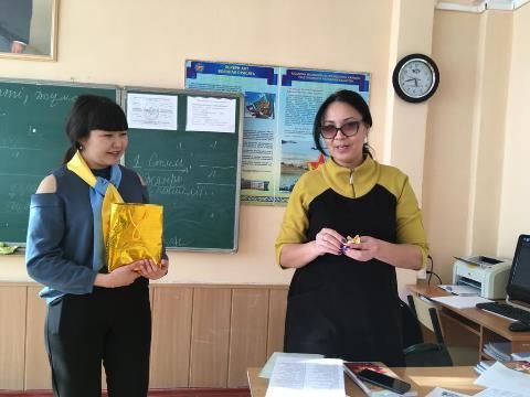 Бастауыш сынып мұғалімі А.Т.Жандаулетовға берілді.