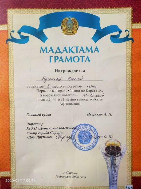 2А сынып оқушысы Құрал Нұрдан. ІІІ орын